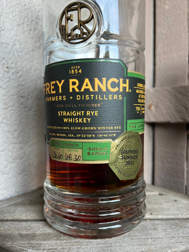 - Frey Ranch Single Barrel Rye – San Francisco Whiskey Bourbon Scotch Society (68.30 % ABV) Barrel #734 – More information of this Single Barrel below: