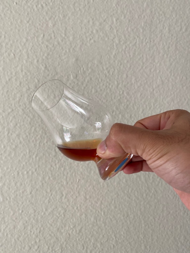 Blue Glass – Medium sweetness with a warming texture and pronounced flavor intensity. More spices in the front, sweet oak, caramel with rye bread. Then stewed fruits, dates, oatmeal and strawberries. Build up more in flavor intensity towards the end