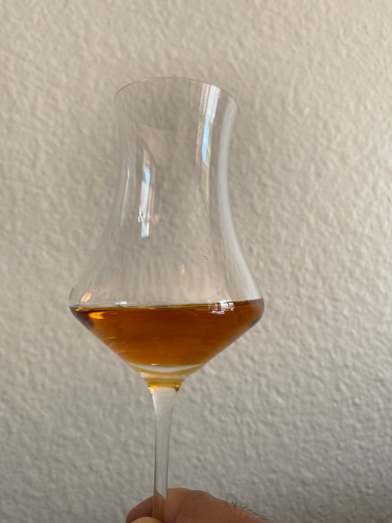 The sherry influence is very evident as expected! Clean and light to medium intensity. Toffee, caramel candy, notes of ripening mango, and banana peel but its mixed in with this machine oil or glue note. Some spices and fruit citrus oils (maybe orange?)