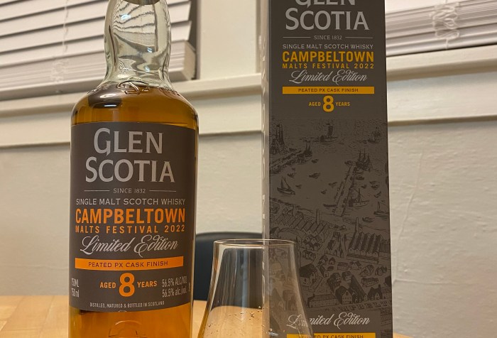Glen Scotia brings out another hitter! DISTILLERY Glen Scotia REGION Cambeltown, Scotland AGE 8 Years STRENGTH 56.5% ABV (113 Proof) MASHBILL 100% Malted Barley MSRP $79.99 GLANCE Clear with low … Continue Reading Glen Scotia Cambeltown Malts Festival 2022